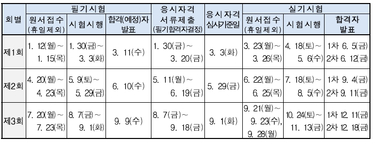 산업인력공단이 발표한 2026년도 기사 산업기사 시험 일정표